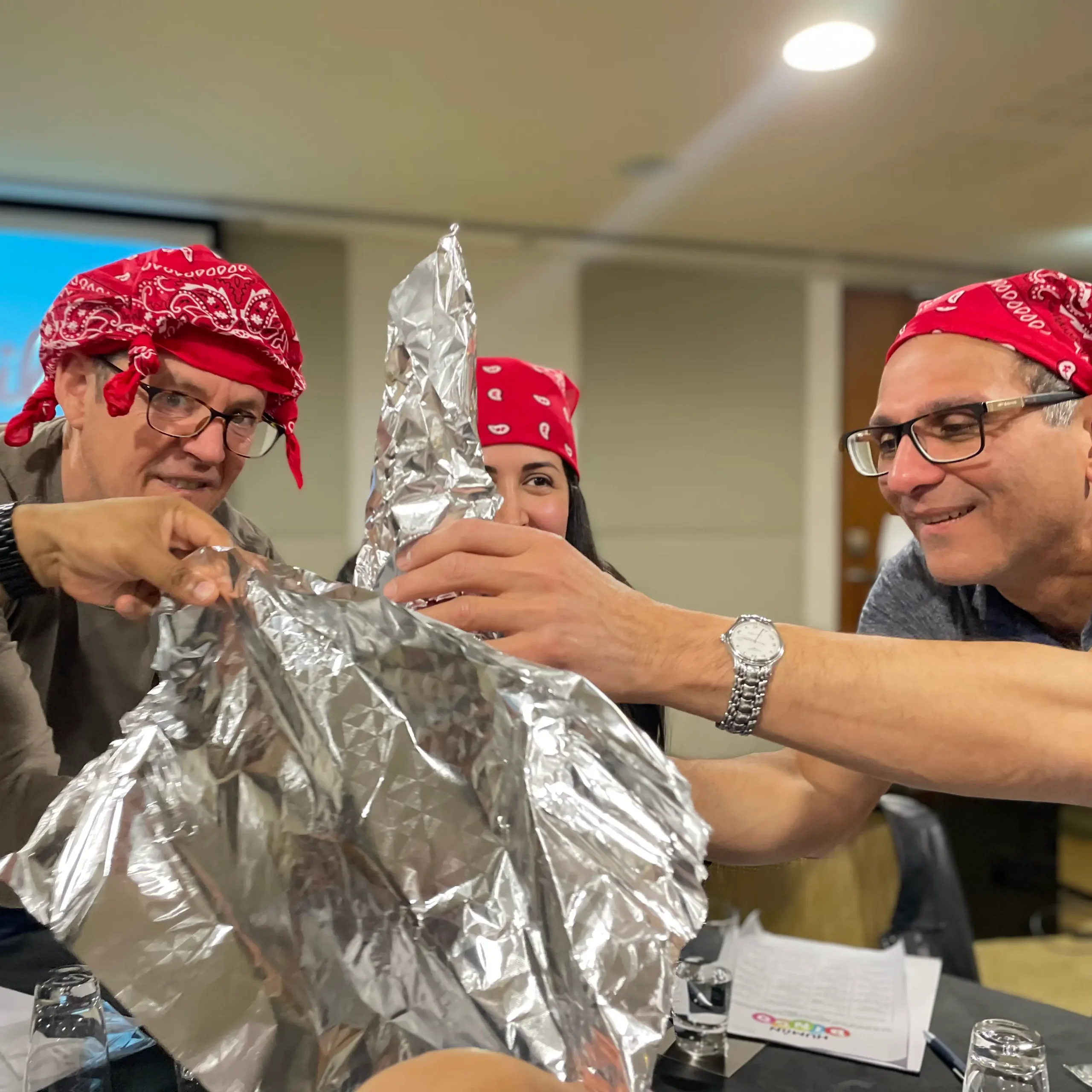 Each table of delegates forms a team and receives a Charity Challenge activity booklet containing 45 challenges. The challenges are divided into 15 easy, 15 medium and 15 hard tasks, with each challenge catering to different thinking styles including mathematical, artistic, creative and scientific.