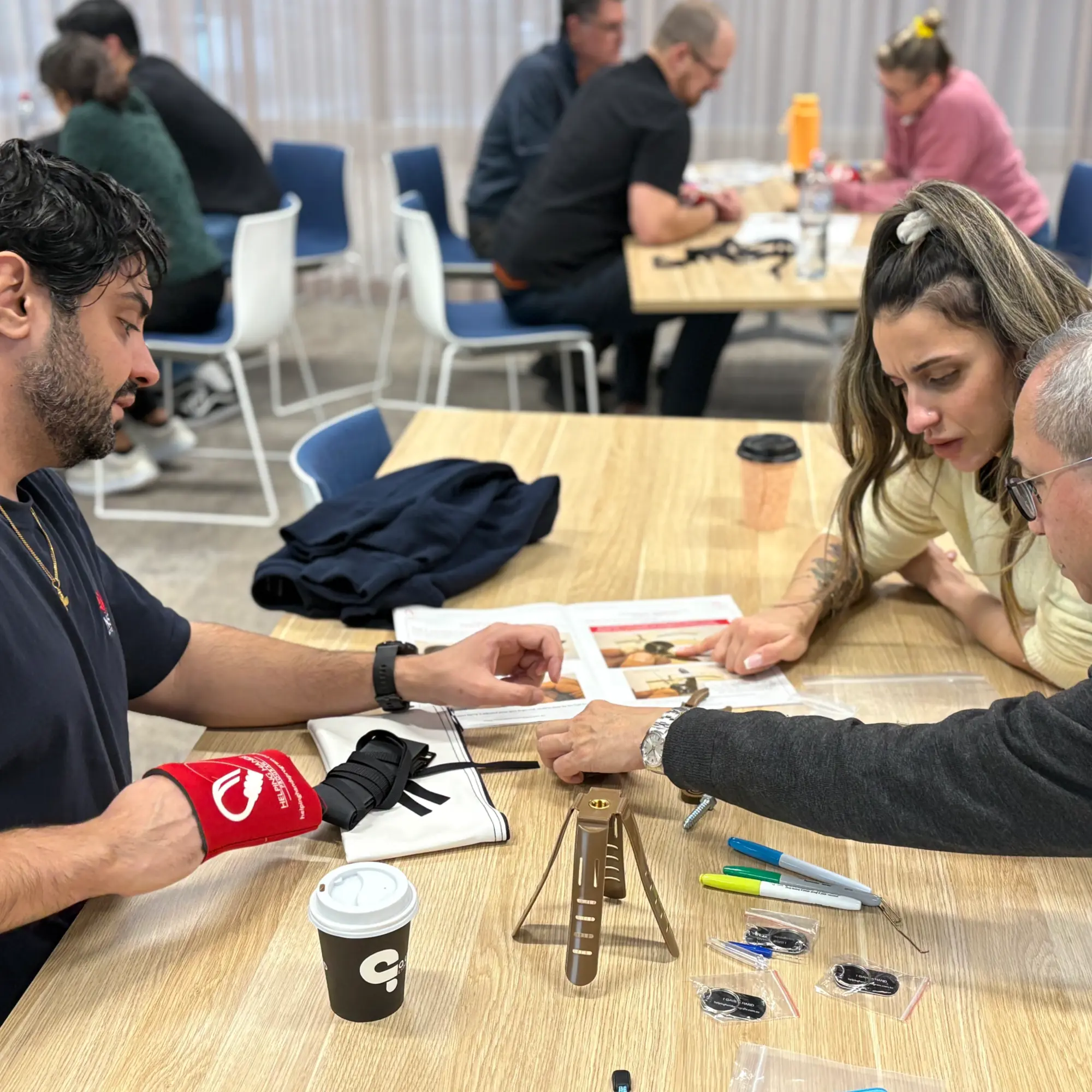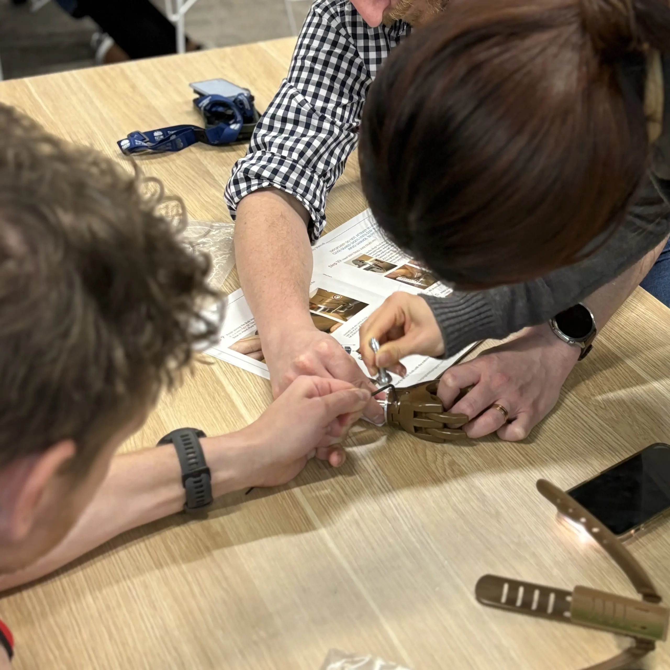 To simulate the daily challenges faced by amputees, all participants work one-handed throughout the activity. Beyond assembly, the session includes reflective discussions and connection-building exercises to encourage collaboration, problem-solving, and empathy.
