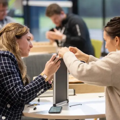 Working in small teams of 3–4, participants assemble their StudentBuddy units from provided kits. Each unit includes a solar panel, USB charging for two devices, and three light settings. Participants also write a personal message for the recipient, adding a heartfelt connection to the gift. This part of the session can be run in-person at tables, or virtually, where the StudentBuddy units are shipped to participants in advance and a facilitator guides the session via Zoom, Teams, or Google Meet.