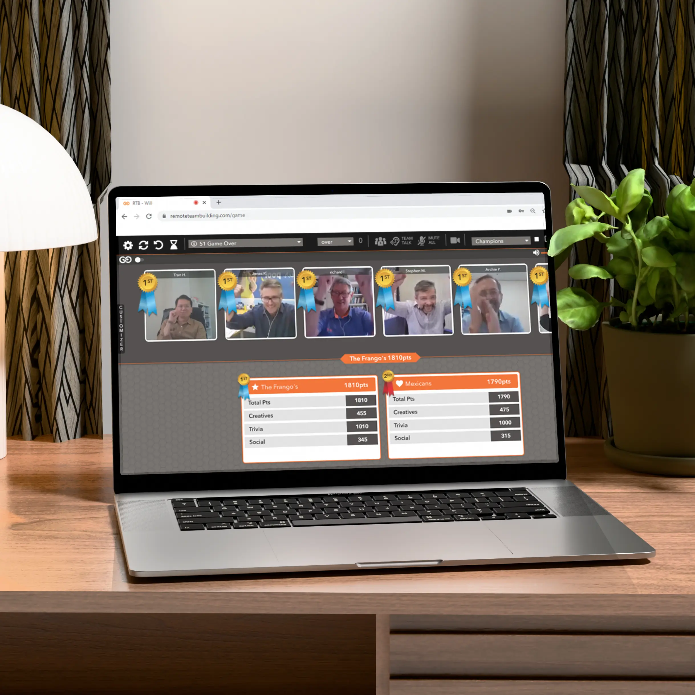 A fun, inclusive, game-show-style experience that keeps remote teams laughing, collaborating, and fully engaged throughout.